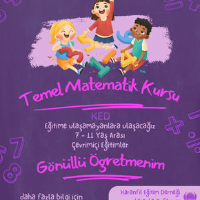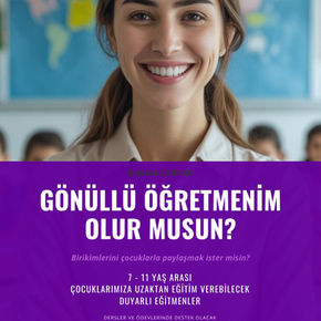 7 -11 yaş arası ilköğretim çocuklarımıza destek olmak amacıyla Gönüllü Öğretmenim tasarısını devam ettiriyoruz.
